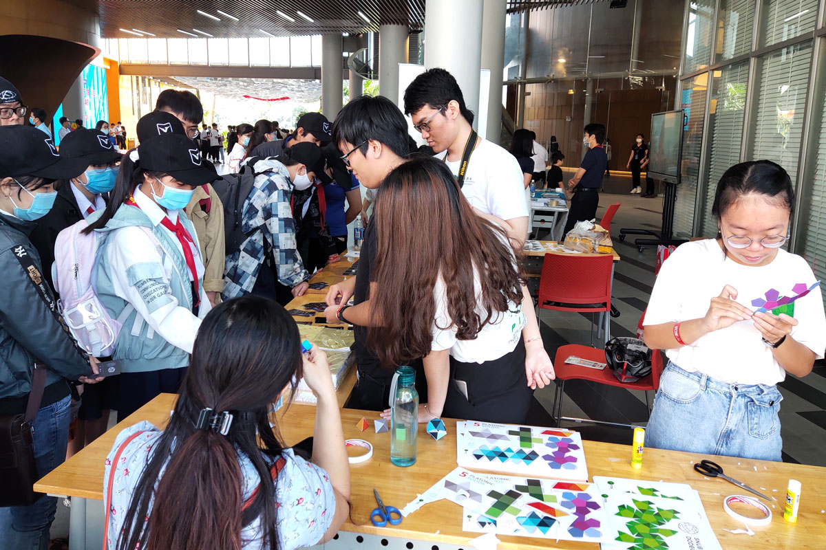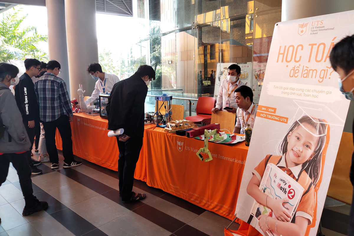 – Các hoạt động triển lãm, trải nghiệm về Toán học được tổ chức xuyên suốt Ngày hội, với 20 đơn vị phối hợp nội dung là các trường đại học, trung học, doanh nghiệp, nhà xuất bản. Đặc biệt, “Không gian Toán học kỳ thú” của Trường Quốc tế Nam Mỹ (thuộc hệ thống giáo dục Văn Lang) trưng bày những sản phẩm, mô hình STEM – ROBOT, tương tác công nghệ in 3D, CNC, khu lắp ráp 3D, trải nghiệm công nghệ có tùy biến… do học sinh nghiên cứu và thực hiện.